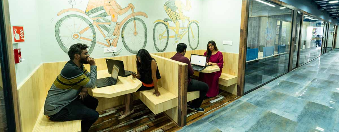 Modern collaborative spaces are designed to cater to the creative sensibilities of the current workforce. Premium spaces take pride in vibrant walls, state-of-the-art installations, and groovy seating arrangements.